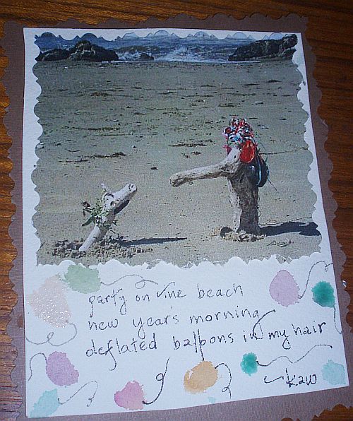 01/04/2008 Author's Note: 16 of 60 one of a kind haiku and artwork responses to other haiku poets. The construction and photo is a sample of one of my favorite preoccupations... seeing, posing, and identifying with such found creatures (and writing about them)!