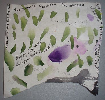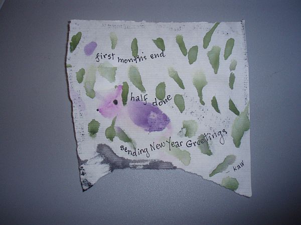 first month's end I'm half done sending new year greetings watercolor and ink on handmade paper